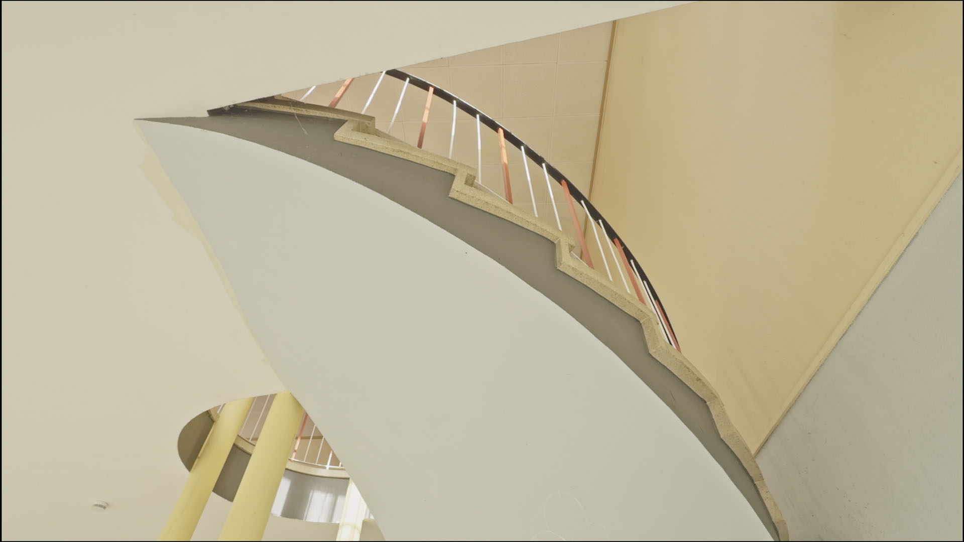 Zur Beerdigung würden wir gerne einen von der speziellen Architektur des 50er Jahre Baus inspirierten Film vom leeren Gebäude erstellen, der dann zum „Sprechanlass“ für Erinnerungen werden soll.